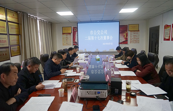 4月1日,市公交公司召開2021年第一次股東會(huì)暨二屆十七次董事會(huì),公司全體股東、董事會(huì)成員參加會(huì)議,監(jiān)事會(huì)、審計(jì)監(jiān)督組成員、紀(jì)委書記列席會(huì)議。公司董事長張曉強(qiáng)主持會(huì)議。
